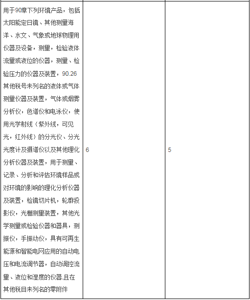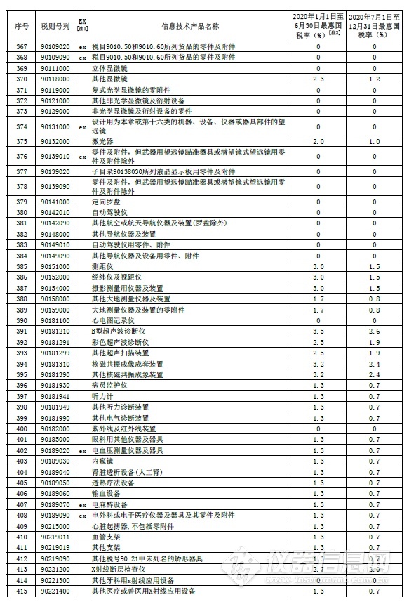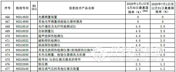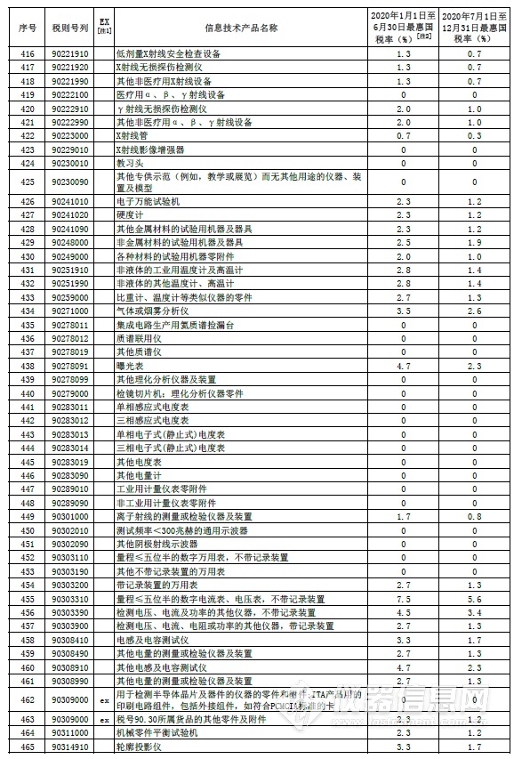 部分信息技術產品最惠國稅率表中的儀器