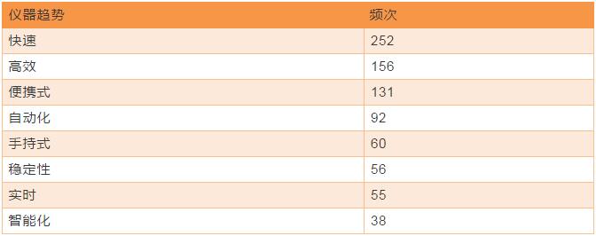 從統計中,我們還看到了用戶對于儀器創新的期盼。快速、高效、穩定是分析儀器始終追求的優質性能,隨著現場檢測需求的增多,便攜式、自動化、手持式、實時、智能化被提到的頻率越來越高,廠商在宣傳新品時也往往用到這類詞匯。