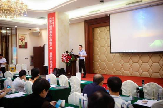 發布會現場,首先蔚儀公司董事長王耀儀先生致歡迎辭,介紹蔚儀公司發展歷程、經營理念、組織架構等,隨后蔚儀公司相關人員宣講新產品相關資訊,最后蔚儀公司廣東區域優秀經銷商代表發言,我司鴻華科技有限公司總經理許高云先生是第一位上臺發言的優秀經銷商代表。另外發布會期間有穿插抽獎環節,令本次發布會好評如潮,掌聲不斷。