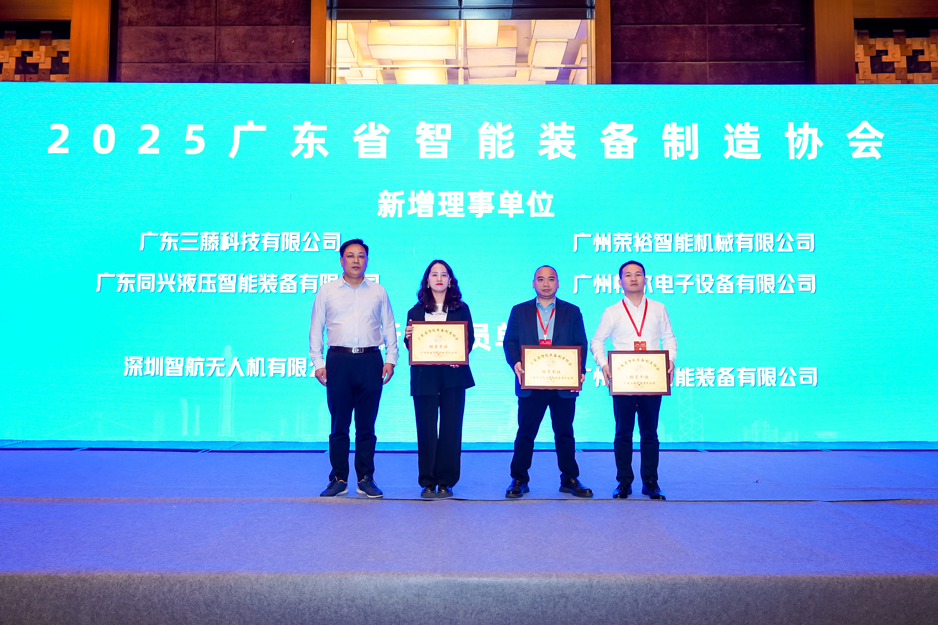 2025年3月25日,“AI賦能,智造全球”2025廣東省智能制造高質量發展大會在廣州隆重舉行,本次大會由廣東省智能裝備制造協會組織,協會旗下200多家會員企業的代表、智能裝備領域專家學者、金融服務企業的代表等參加會議。鴻華科技有限公司總經理許高云受邀參加本次大會,鴻華科技有限公司下屬廣州鴻華智能裝備有限公司通過大會表決被同意加入廣東省智能裝備制造協會,成為協會會員單位。
