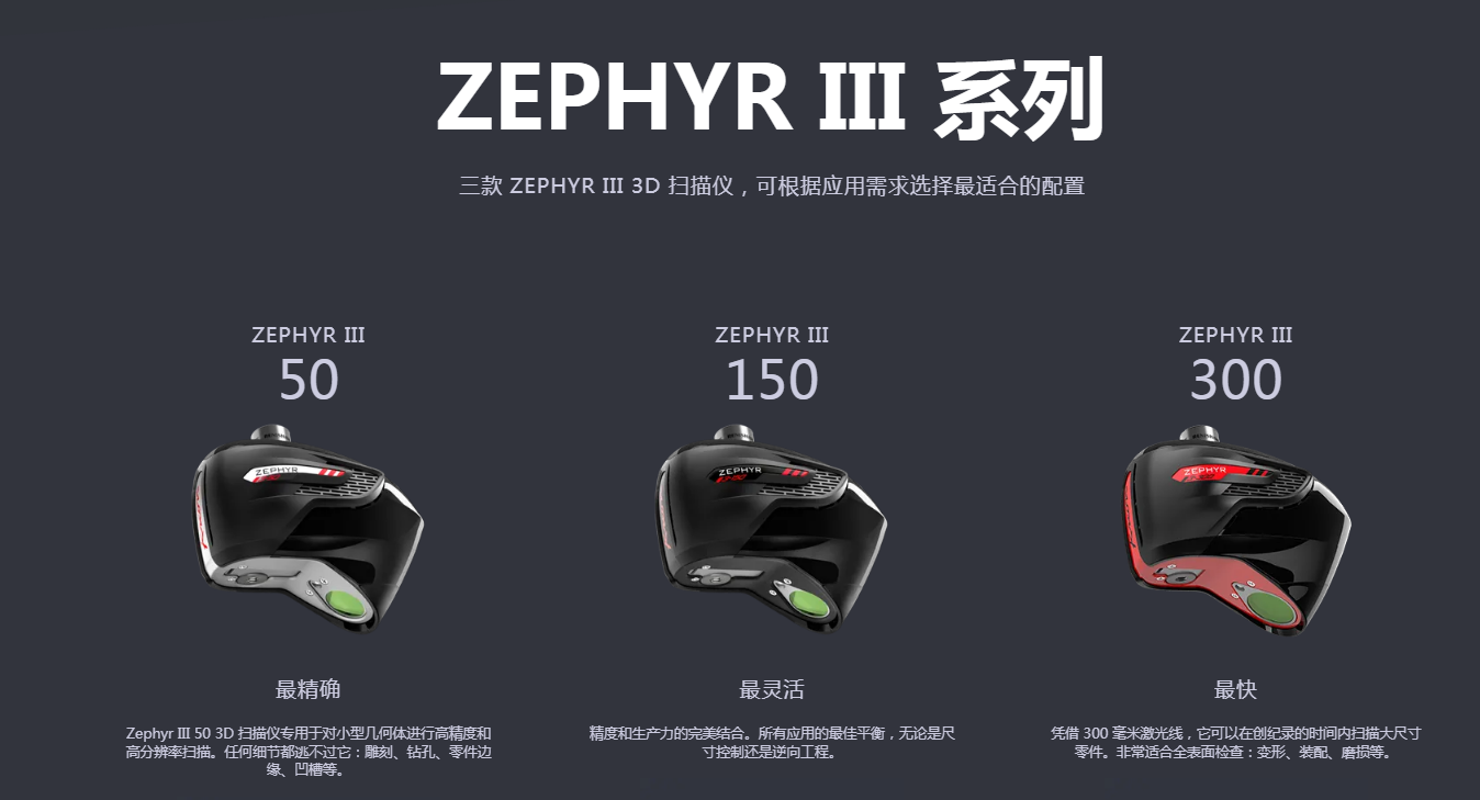 Zephyr III 高端掃描儀搭配150mm或50mm激光線,能在數(shù)秒間輕松掃描復(fù)雜物體。藍(lán)色激光線可直接掃描黑色或光澤表面。作為通用產(chǎn)品,它們滿足CMM所有測量需求,并且可以在測量臂、機(jī)器人、機(jī)床和光學(xué)跟蹤儀上靈活切換。